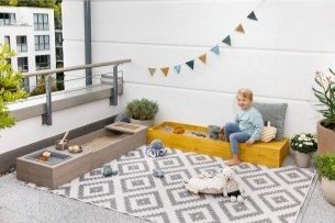 This 'Flexy Style' sandpit from MUDDY BUDDY® provides flexible digging fun even in the smallest corner. The great thing about the 'Flexy Style' is, it adapts perfectly to your set up at home. It has two flexible elememts (one in warmgrey, one in mustard) which can be arranged the way you like - next to each other, behind each other or around the corner. This 'flexy wonder' comes with all the features the bigger sandpits have as well: a plastic container for splashing with sand and water, a storage compartment with a lid for storing all the sand toys, two printed hobs and an abacus with two rows. This sandpit is ideal for smaller balconies and garden spaces. So, let's go outside and play! Also included is a sandpit fleece. It comes without the decoration. Available in two colour ways.